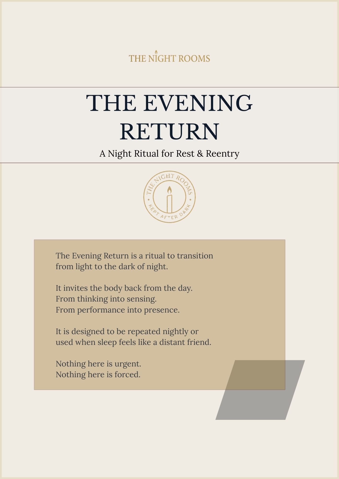 A calm invitation to close the day with intention. A small, private practice you can repeat each night to ease mind and body into quiet restoration.