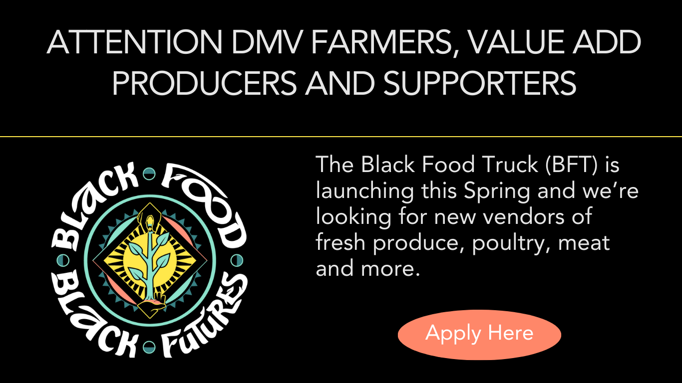 The Black Food Truck (BFT) is a farmers market on wheels committed to food justice, supporting local agriculture, and growing connections throughout the DMV. Driven by principles like ujima, collective work and responsibility and ubuntu, a recognition that everyone is interconnected, the BFT collaborates with local Black and brown farmers to provide the region with nutritious and organically-grown produce.