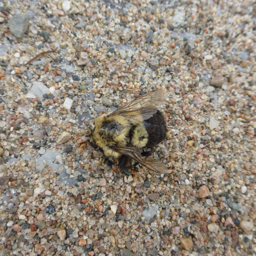I found a dead bumblebee queen on a road. She had been scanning the urban landscape for pollen and found nothing within flying range. She starved.