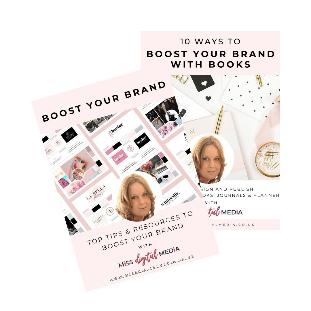 My '10 Ways to Boost Your Brand with Books' ebook includes an overview of the opportunities of self publishing and is packed with ideas that will inspire you to create design and publish your own branded books, ebooks, journals and planners.
