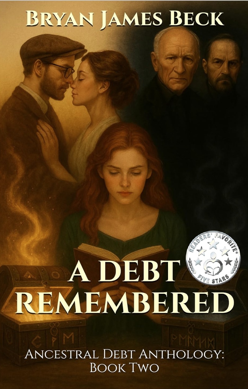 "I was pulled in right away by Bryan James Beck’s riveting and imaginative fantasy thriller, A Debt Remembered. It’s the tale of college student, Robert Gagné, studying and living in New Hampshire. One day, he finds he’s inherited an old chest from his grandmother, and when he opens it, it transports him back to Ireland in the Middle Ages, in a place called Éire, outside the village of Clan O’Maingin. Robert meets Nancy, a warrior and part of the clan. Nancy teaches him how to survive, and there is definitely something romantic simmering. Unfortunately, Roman soldiers are attacking, and more oddness is in store for our hero. There’s an intense magic ritual, and Robert gets pulled back into the box and whisked away to Liverpool circa 1847.