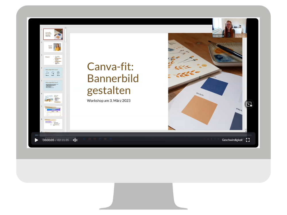 Hast du Lust, Canva auszuprobieren? In diesem Online-Workshop gestaltest du dein erstes eigenes Bannerbild und