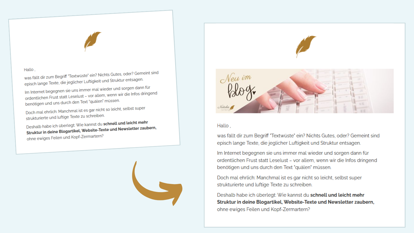 Mit einem Bannerbild wertest du deinen Newsletter nicht nur optisch auf. Du schaffst Wiedererkennung und kannst schon im Headerbereich das Thema deines Newsletters anteasern – z. B. deinen neuen Blogartikel, deine Kernkompetenz oder deine nächsten Termine.