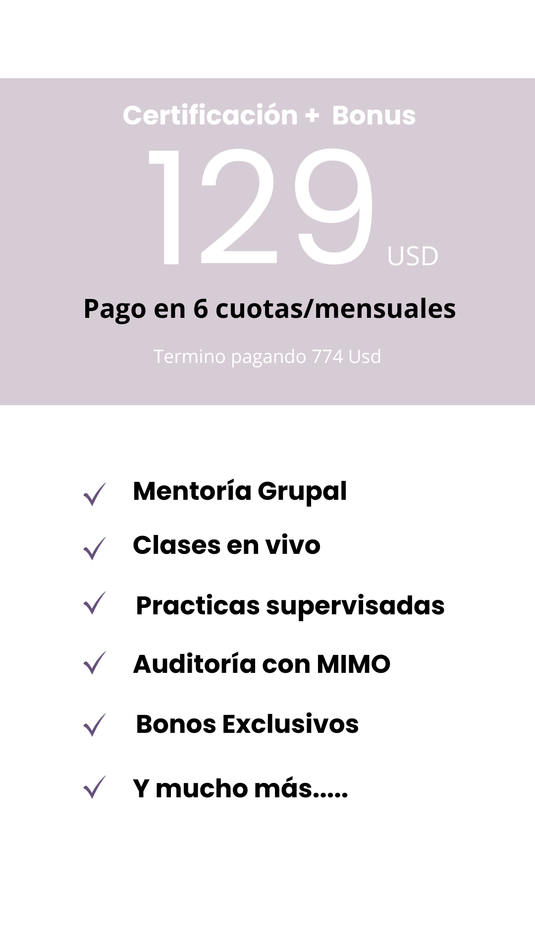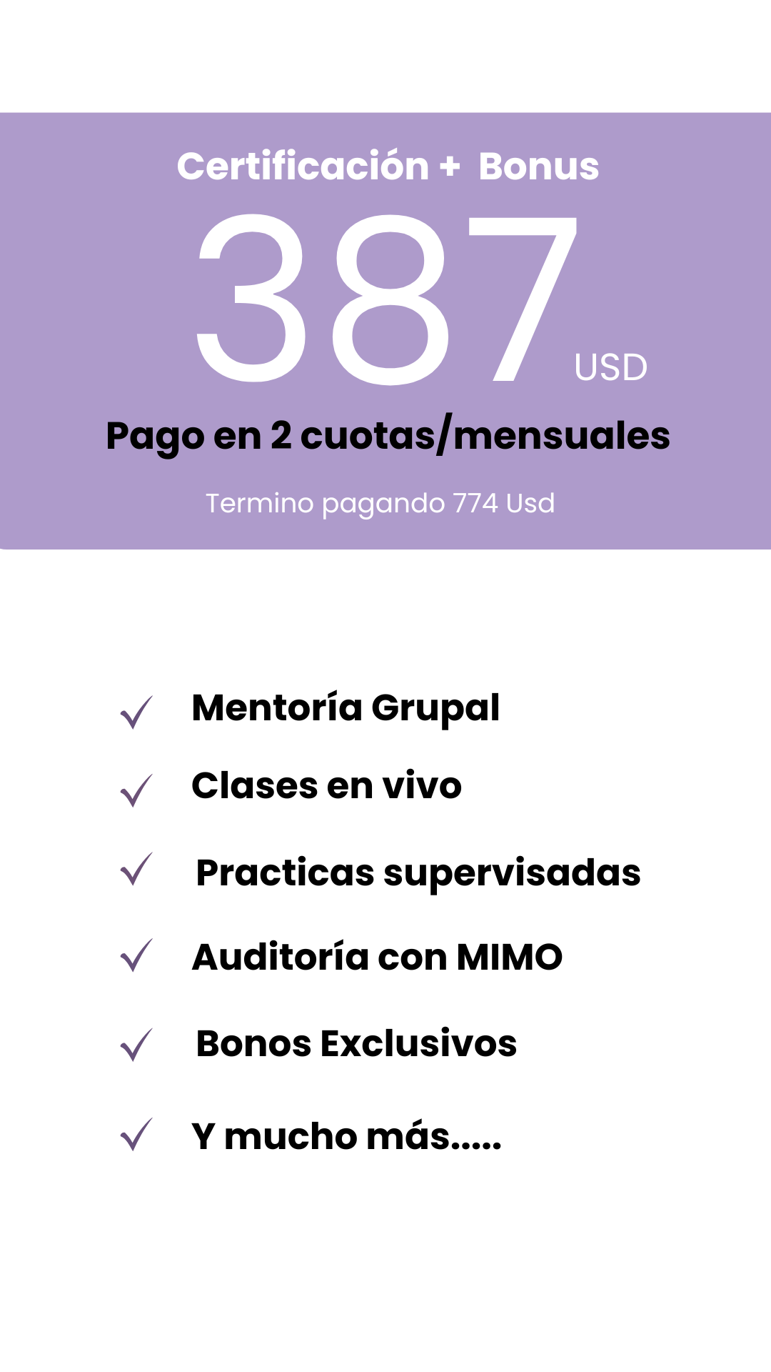 El precio oficial de este curso es 1,920 USD, precio promocional 767 USD
