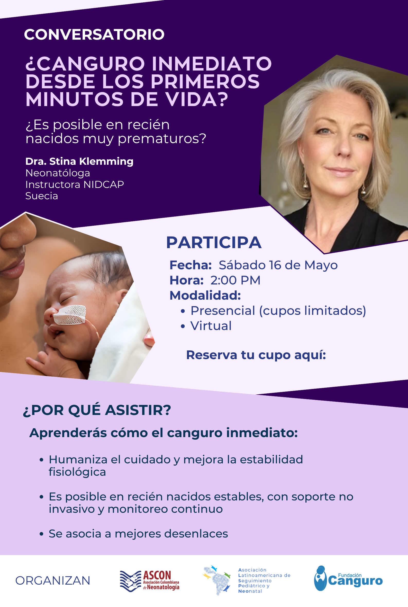 Este conversatorio abordaráel canguro inmediato como una práctica para transformar la atención de los recién nacidos MUY PREMATUROS en sala de parto.