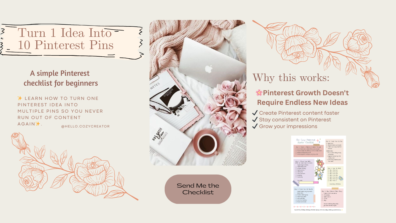 ✨️Get beginner Pinterest tips, new tools, and cozy online income ideas delivered to your inbox. 📌💕