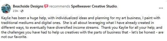 These are from current and past clients of my other services and offers in Spellweaver Creative Studio.