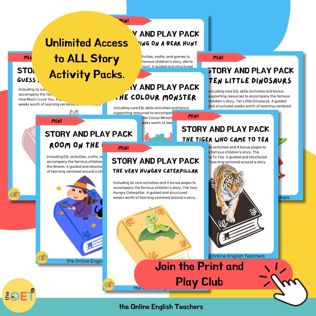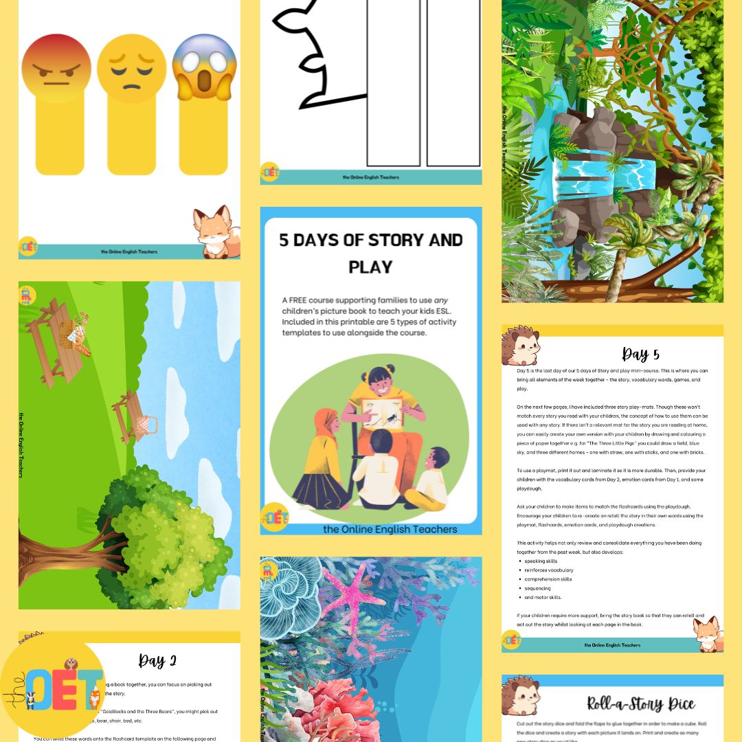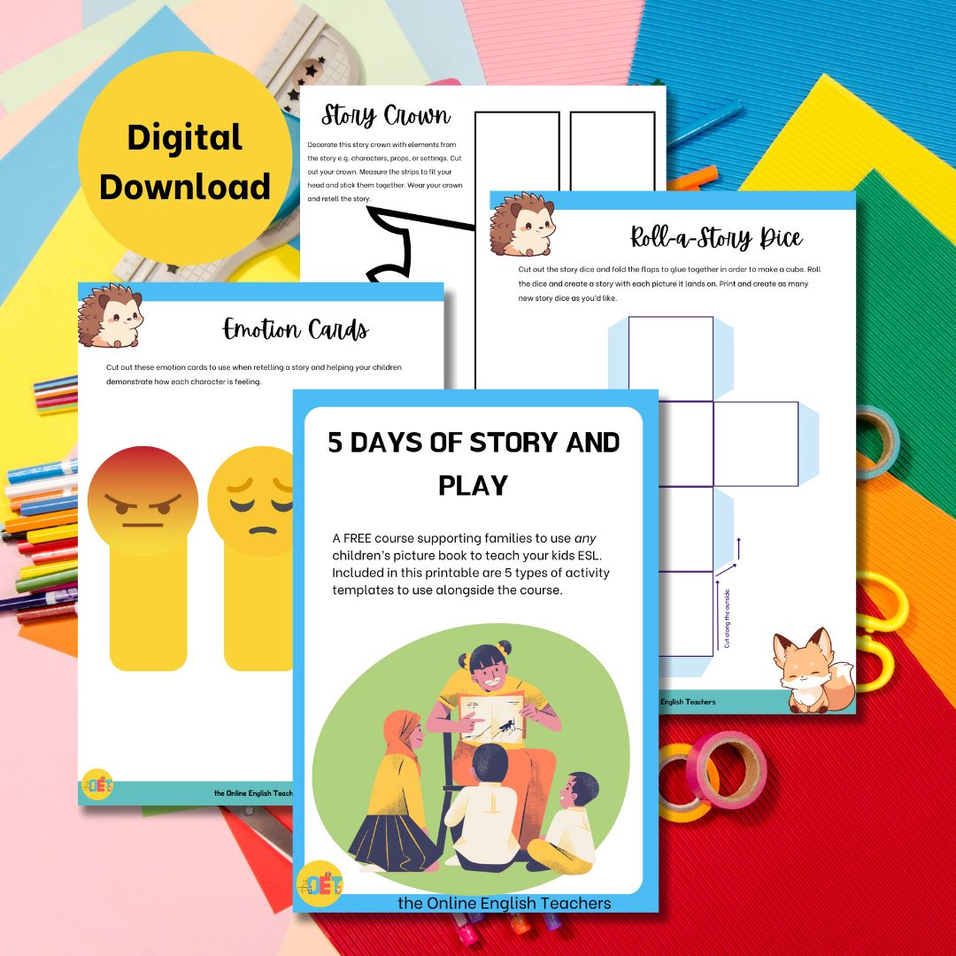Teaching English at home doesn’t have to mean endless worksheets or boring drills. With my 5 Days of Story and Play Mini Course, you’ll discover how to turn any children’s picture book into an engaging English lesson using easy games, playful activities, and ready-to-go printables.
