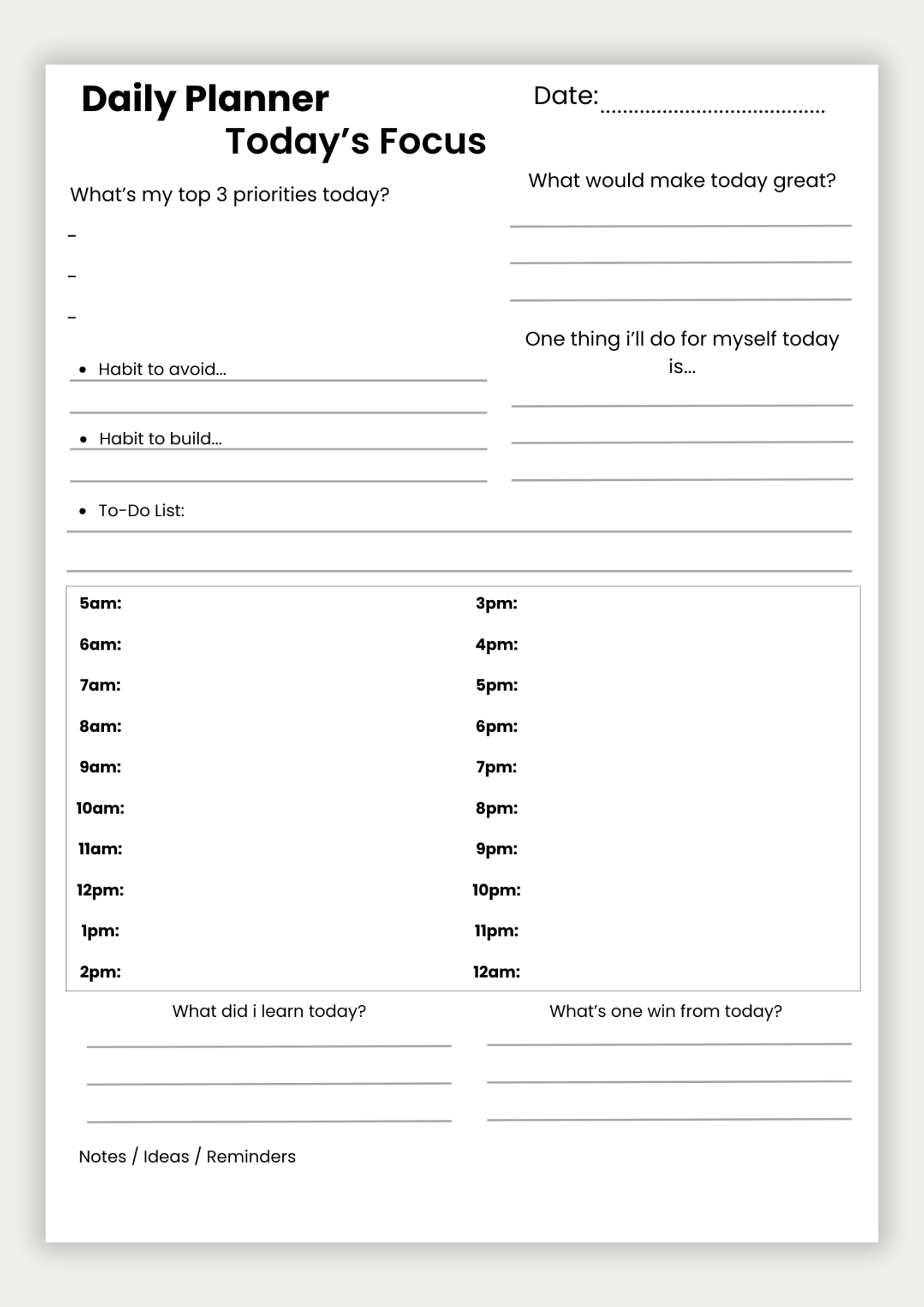 A clean daily planning layout