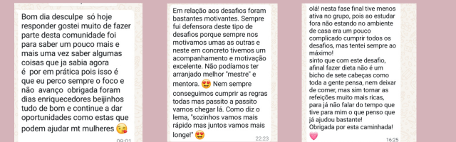 Feedback das Mulheres que participaram na 1ª Edição do Desafio:
