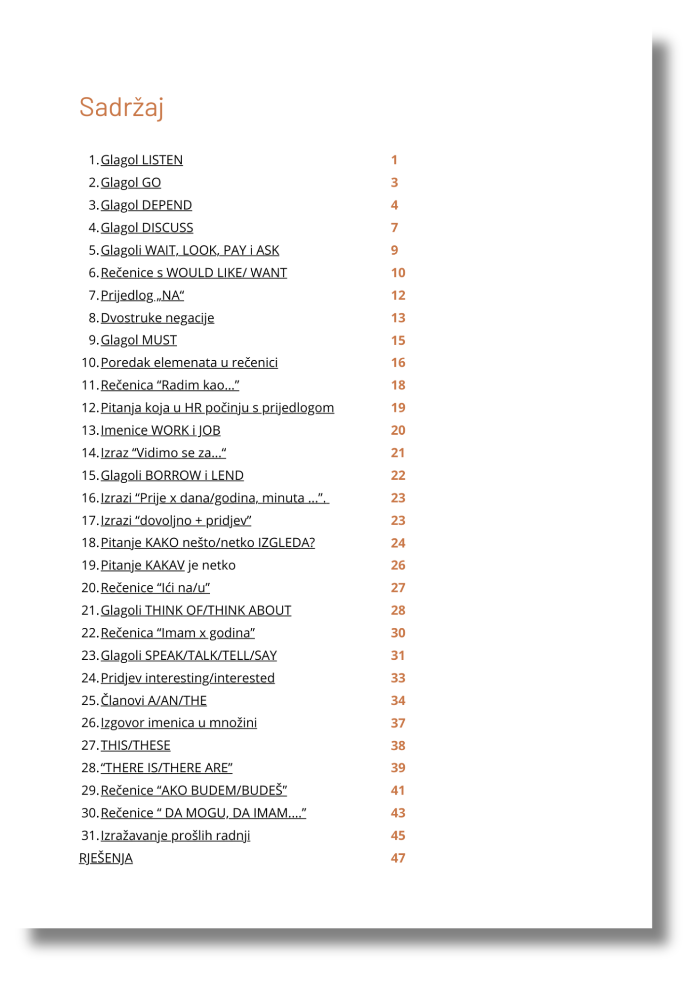Oprosti se sa svim onim pesky (napornim), malim, a opet tako velikim greškama koje te ljute što su ti se dogodile jer ti ZNAŠ bolje, ali dosad nije bilo materijala, ni knjige ni učitelja koji će ti zorno i s lakoćom ukazati na razlog zašto se pravog izraza, vremena ili riječi ne možeš sjetiti ili zašto radiš greške koje radiš.