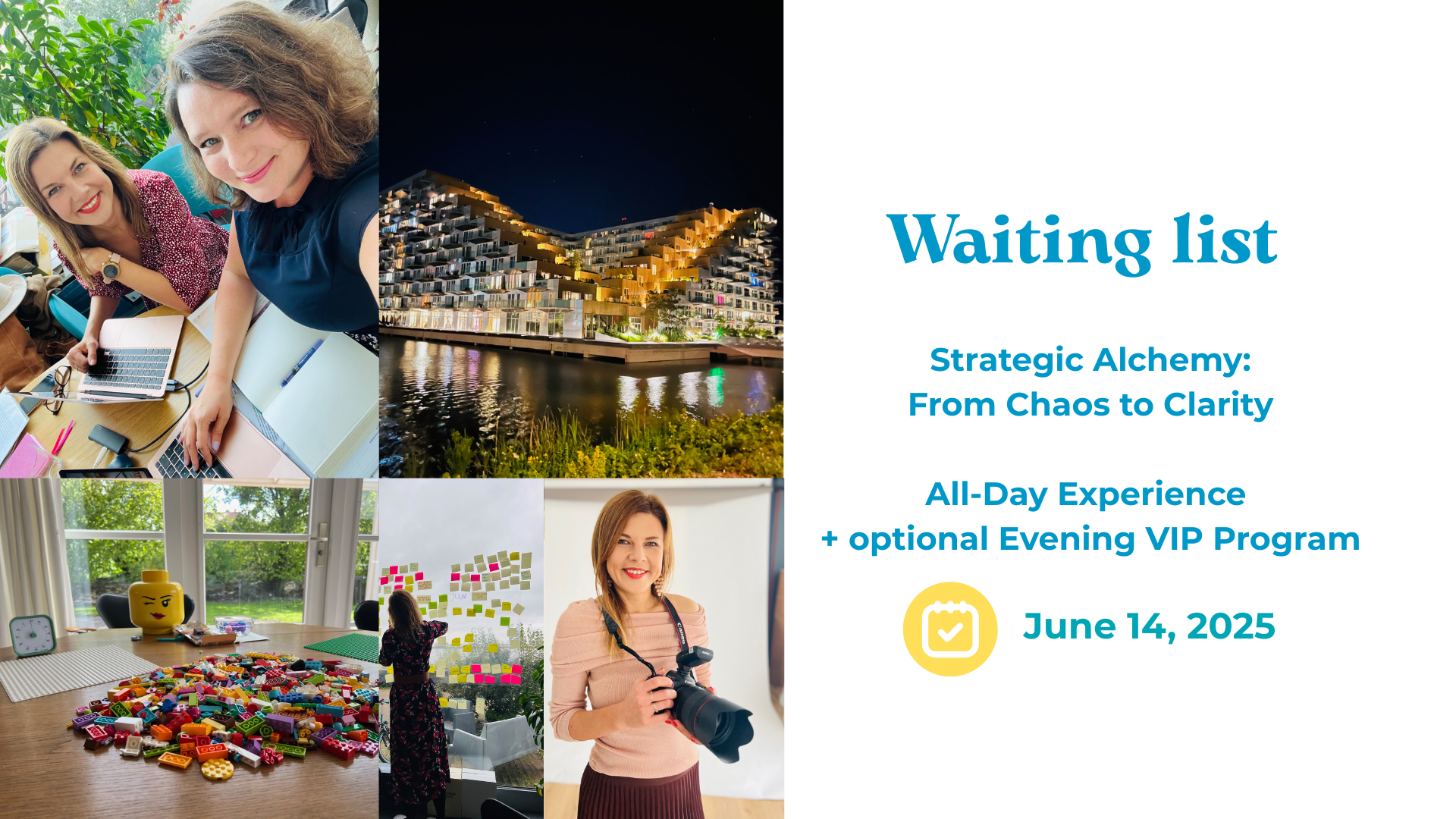 Meet the organizers of this full-day experience bringing you from chaos to clarity: Julia and Kasia. We've been collaborating on many projects over the years. We are both passionate about self-development, learning, travelling, photography and art. We love creating value for the people and companies that work with us and we have crafted this transformative experience to do just that.