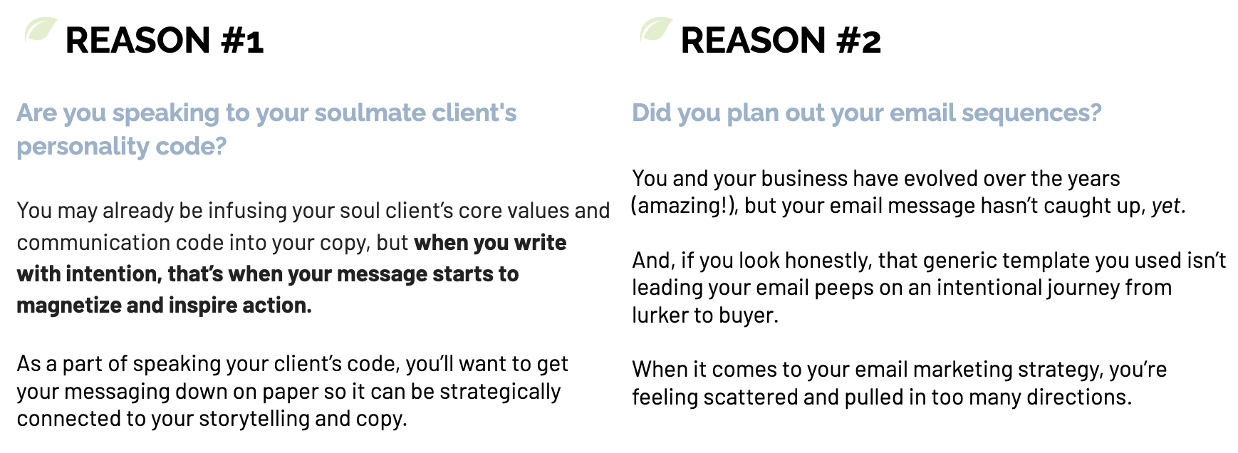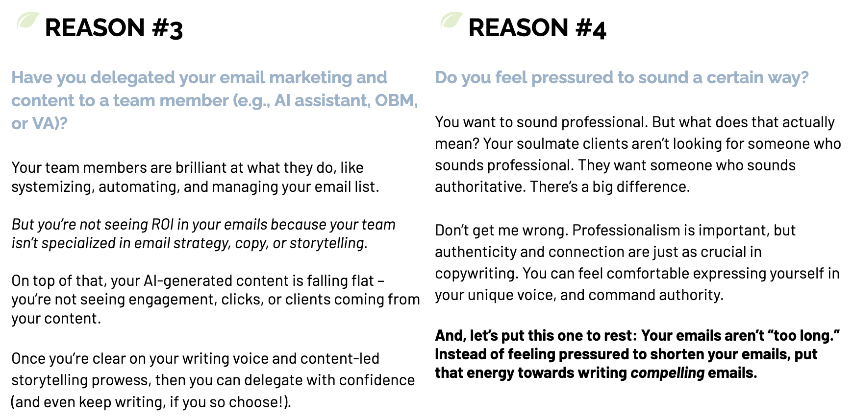 Even if you’re showing up weekly-ish (or sporadically) to your email community with authenticity, you need to write compelling emails that not only educates but inspires your peeps to buy.