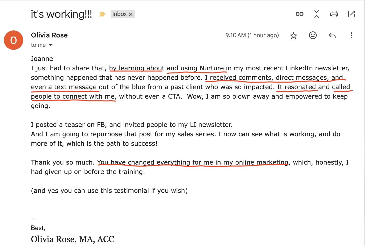 ✅ customize Joanne's exact system from client feedback to official testimonials and messaging gold