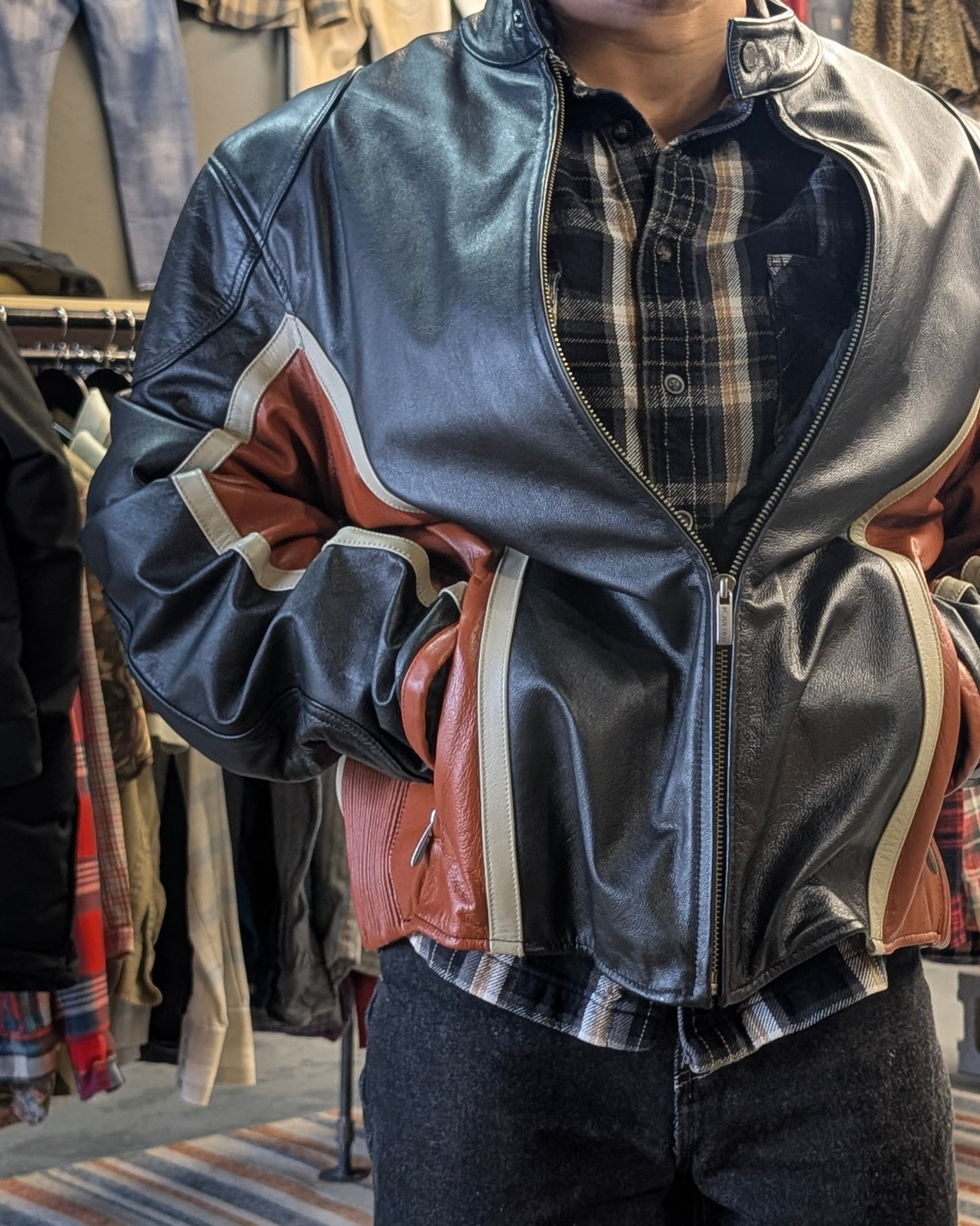 "Good pricing, one of the best selections of vintage jackets, pants, and sweaters I’ve ever seen, the guy was super helpful and friendly, incredible music. Genuinely one of my fav stores I’ve been in."