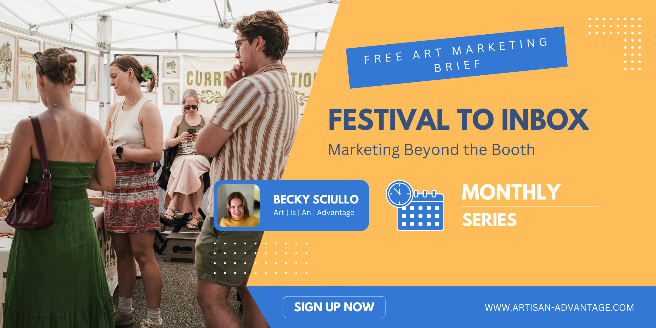 Do you meet dozens of people at art fairs and festivals, only to lose touch once the show is over? Festival to Inbox is a free monthly Art Marketing Brief that helps you turn booth visitors into lasting connections and repeat collectors.