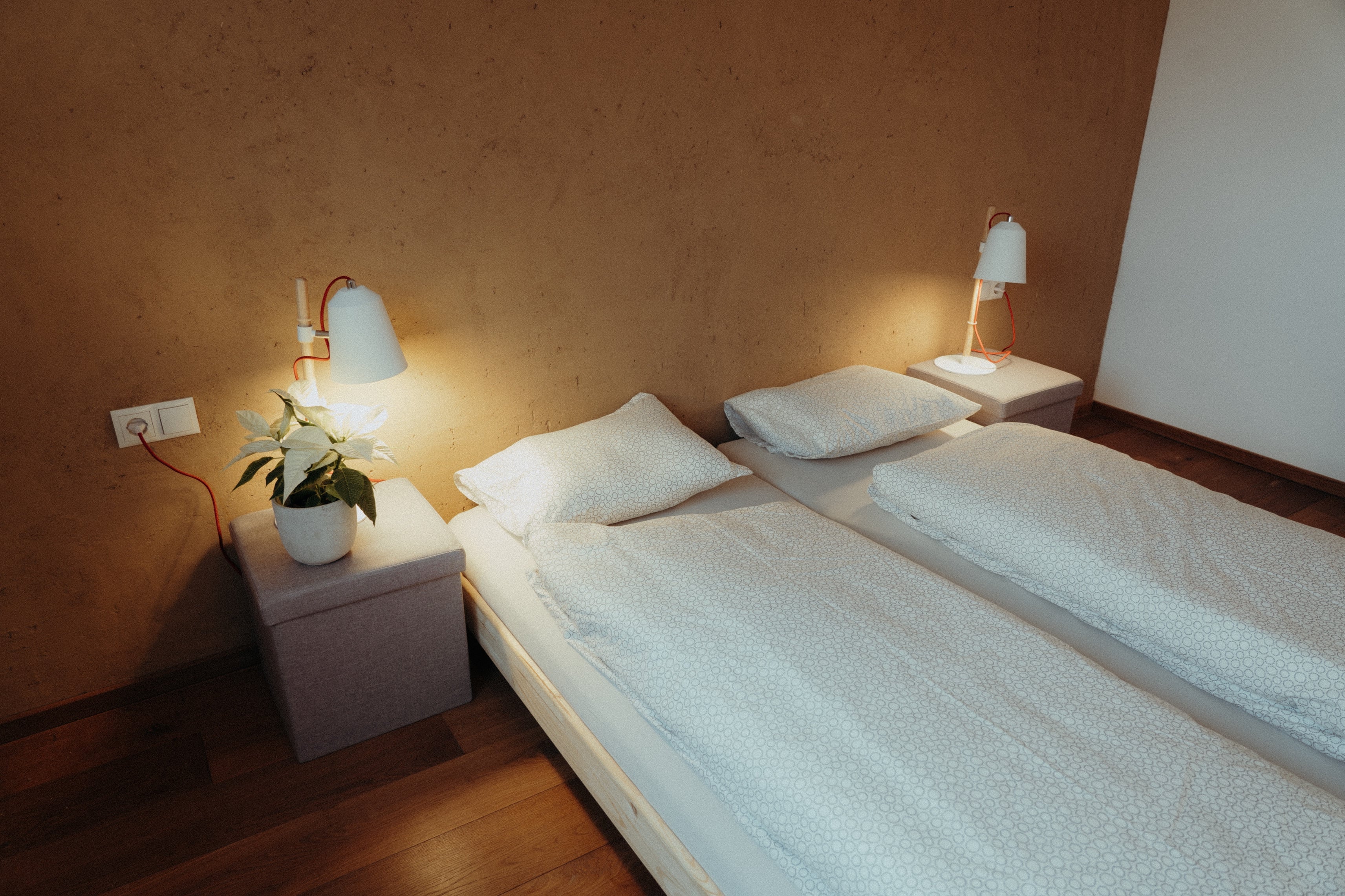 • Erdgeschoss: 2 × Zweibettzimmer, 1 × Einzelzimmer.