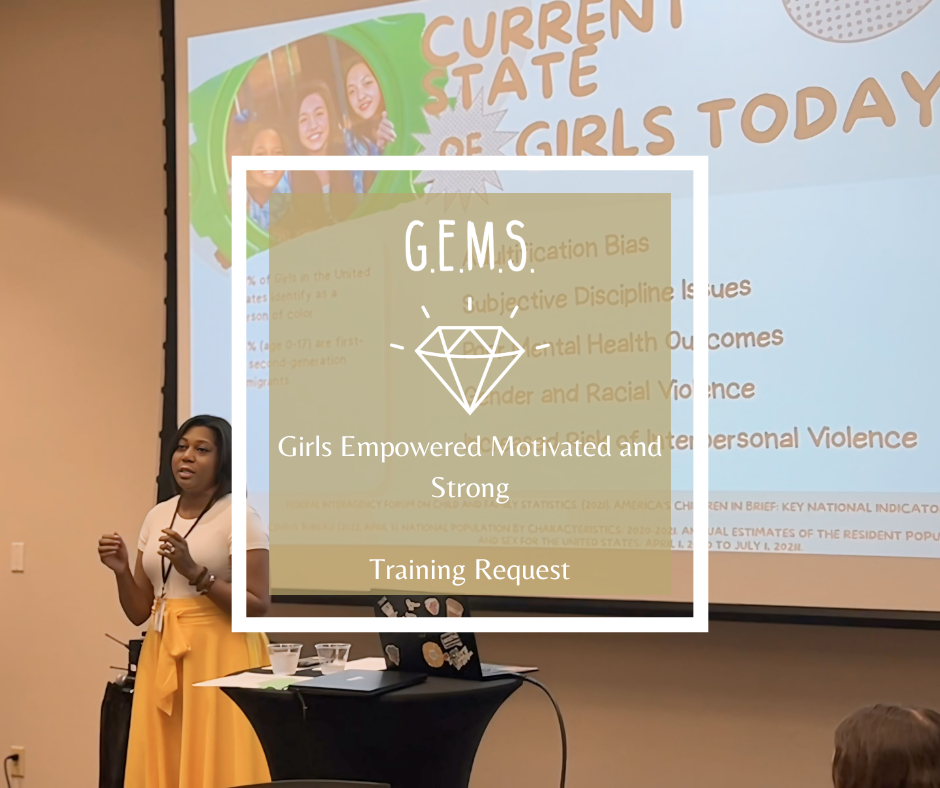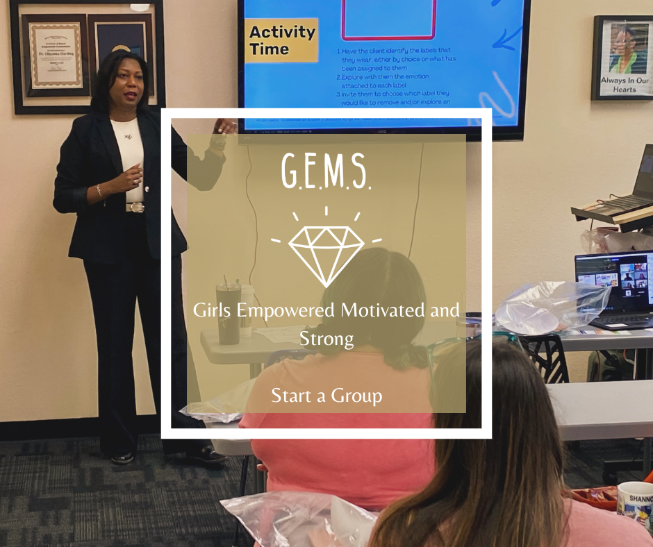 G.E.M.S.® (Girls Empowered, Motivated, and Strong) is an Adlerian-based empowerment program developed by Dr. Erica Tatum-Sheade, DSW, LCSW, RPT-S. It helps girls build resilience, confidence, and belonging through guided activities and reflective discussions.