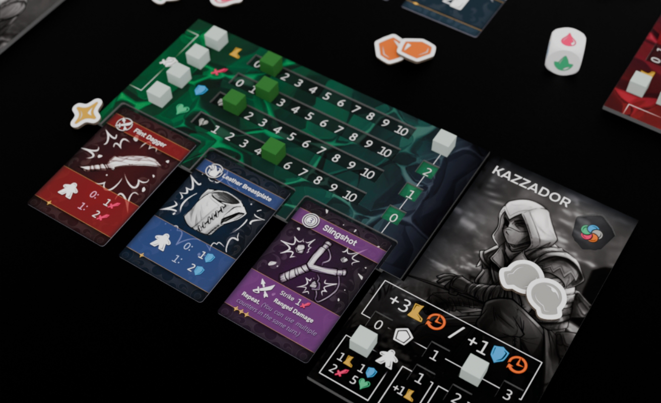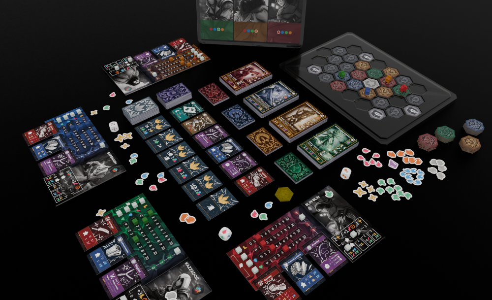 Hexblem es un juego de mesa de aventura para 1–4 jugadores, con partidas rápidas y muy rejugables. Exploras un mundo modular, te haces más fuerte (botín, esencias, tesoros, nivel) y te adaptas a lo que va apareciendo, con tensión creciente hasta el gran clímax: el Imbatible.