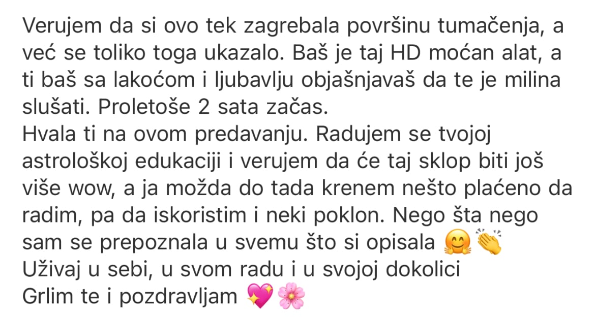 Tu je da te razdrma kad se uljuljkaš u okolnosti. Tu je da ti osvetli samu srž potencijala. Nekada ćeš uživati u tome što čuješ, nekada suočavanje neće biti prijatno. Ali svaki zajednički korak će biti beskrajno vredan, jer oslobađa iz tebe sve što (još ne) znaš da možeš!