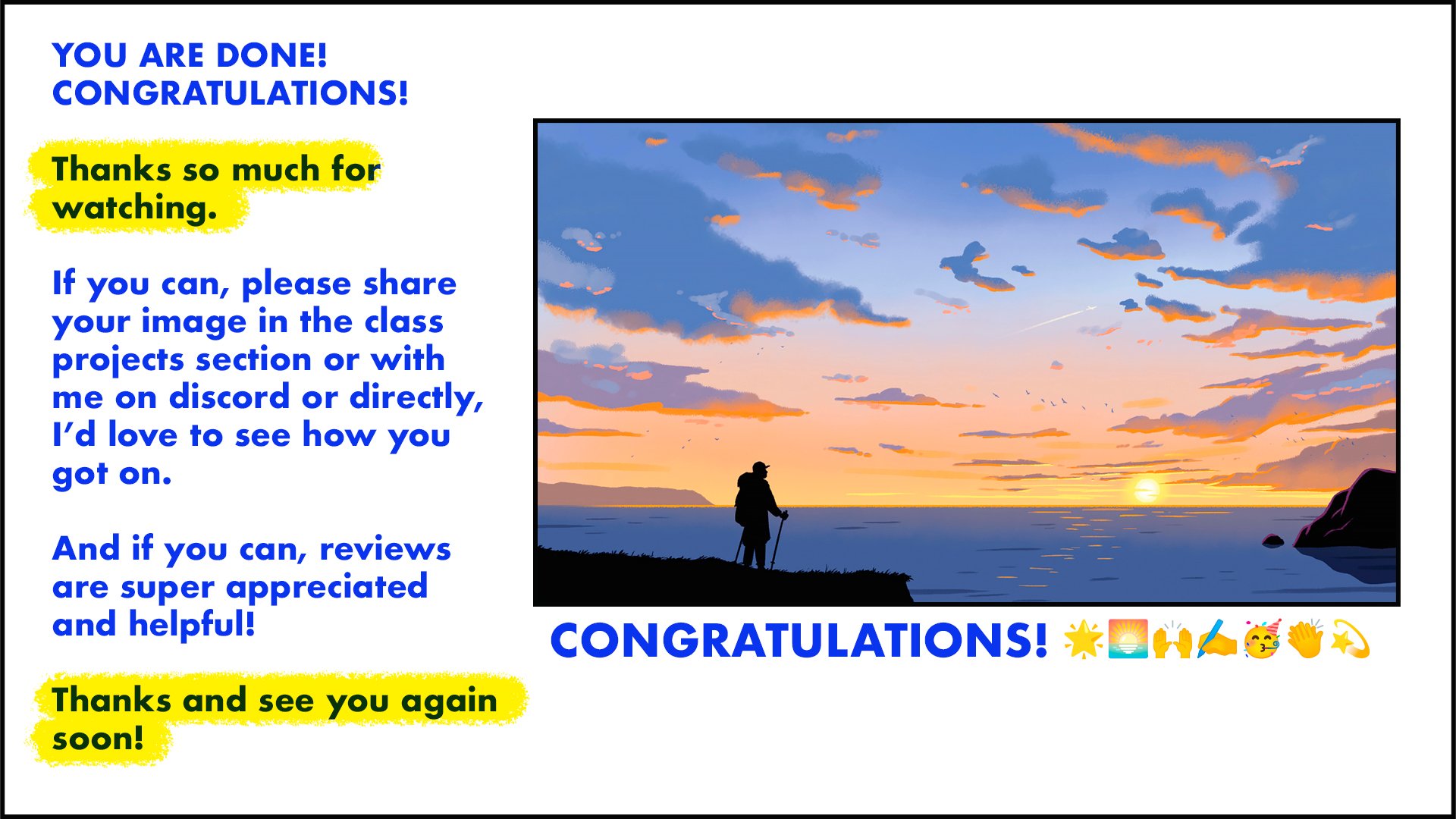 Yes! I believe that learning how to make this sky helps to unlock all types of skies and with resources provided you'll have the brushes, references, textures, and knowledge to take these skills into the next artwork you do, and onwards.