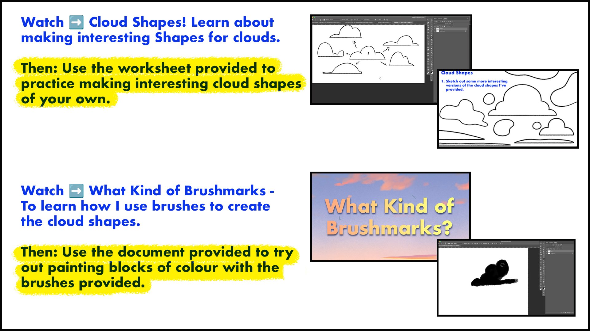 The course includes worksheets, resources, brushes. Everything you need to progress.