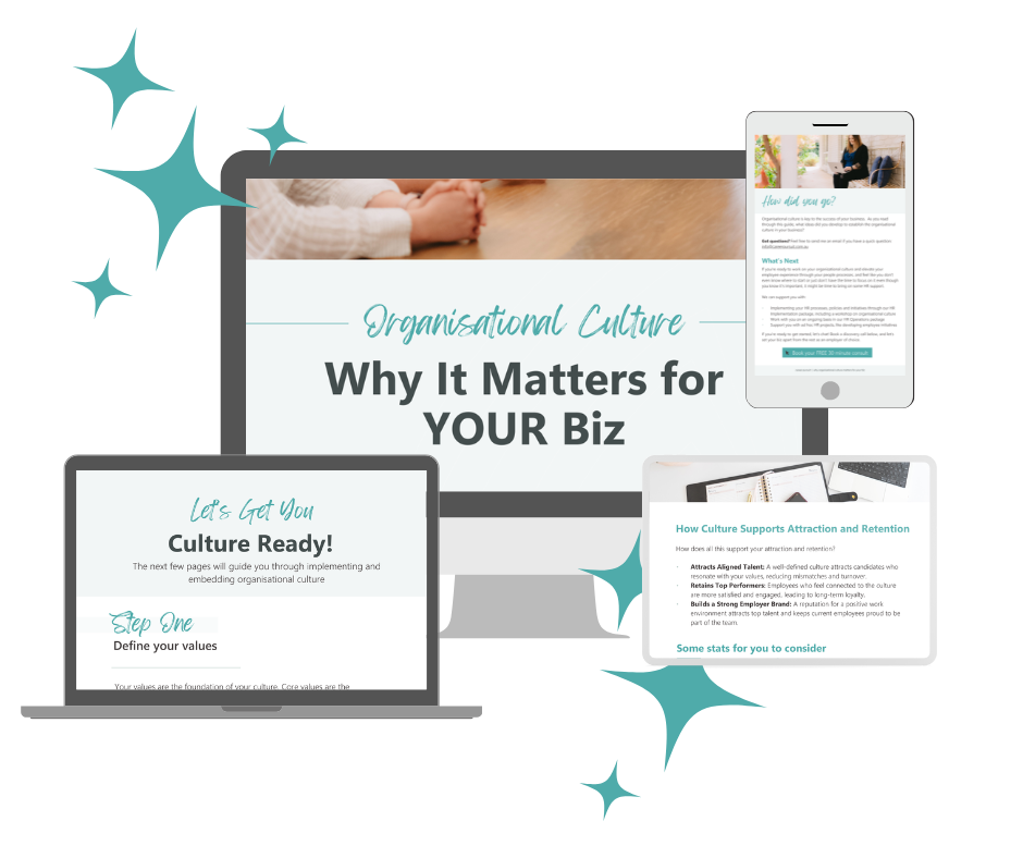 A thriving organisational culture that is set with intention is an essential component to your attraction and retention processes (in case strategy is too scary a word for you). Businesses with strong, positive cultures are better positioned to attract top-tier candidates and retain high-performing employees.