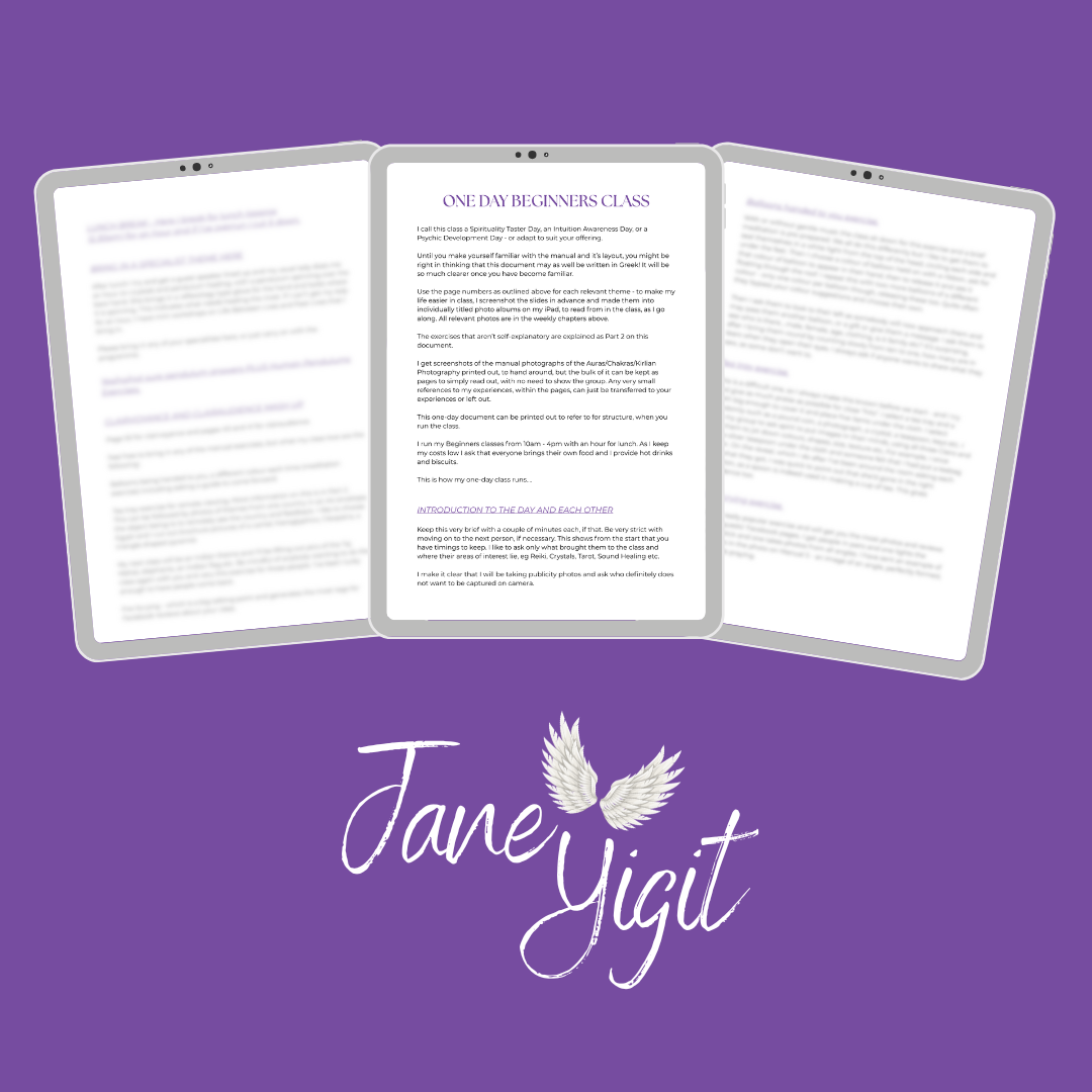 Hello, and a big thank you for enquiring about my Psychic/Intuition/Spirituality Teacher’s Package. This is aimed at people who already have, or would like to start, their own spiritual-themed groups, such as yoga, breath work, sound healing etc, and would love another string to their bow. This offering is very unique as I created the class myself due to a gap in the market. It is written without any AI and using my own 35 years of experience of what works. It is, of course, perfect for the working psychic/medium but there is no need to be, as my classes focus on basic Beginner Level.