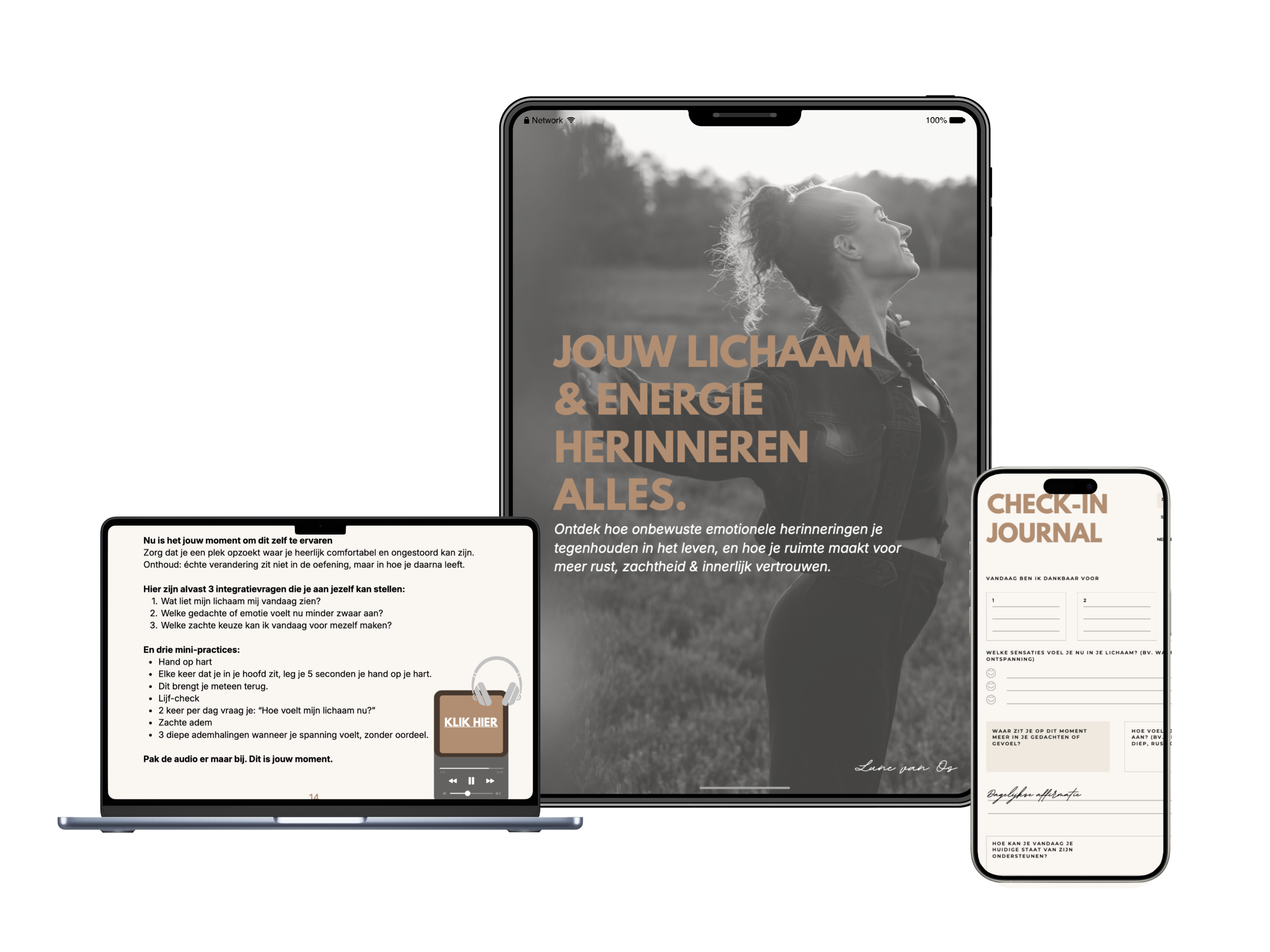 Ontdek waarom oude emoties, ervaringen en overtuigingen nog steeds voelbaar zijn in jouw lichaam & energie. Leer in 7 stappen hoe je dit liefdevol loslaat om de innerlijke rust terug te vinden. Dit E-book helpt je verbinding te maken met jouw lichaam, zodat je hoofd eindelijk stil wordt en je van binnenuit voelt wat klopt.