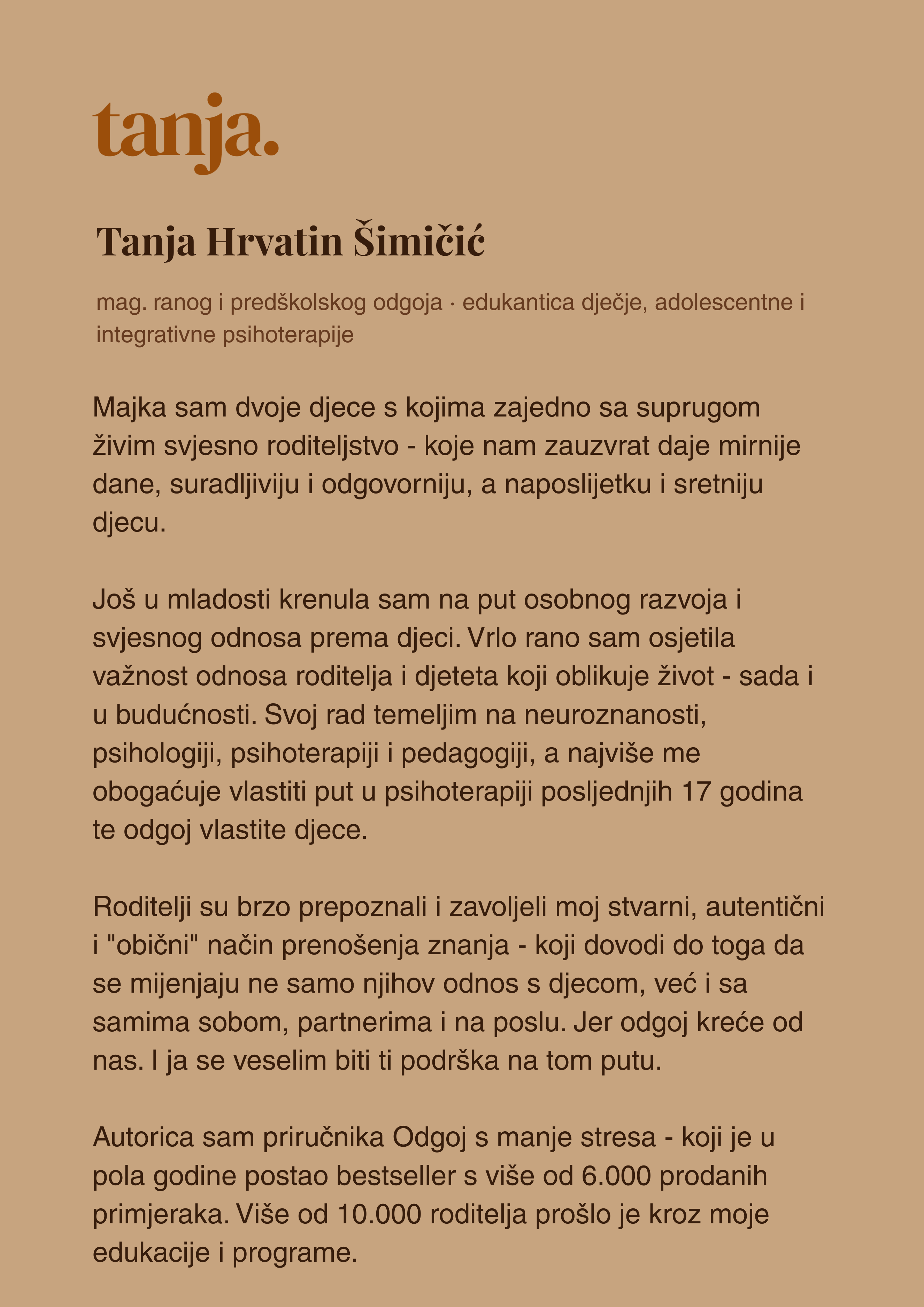 "Sve knjige i edukacije zajedno mi nisu dale koliko Tanjin program. Način na koji povezuje teoriju i praksu - nema ga nigdje drugdje."