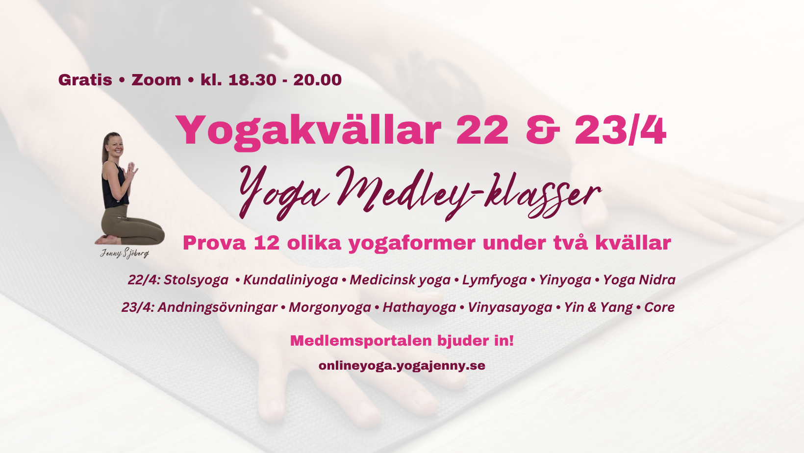 Varmt välkommen till två gratis workshops live på Zoom där du får prova 12 av Medlemsportalens yogaformer!