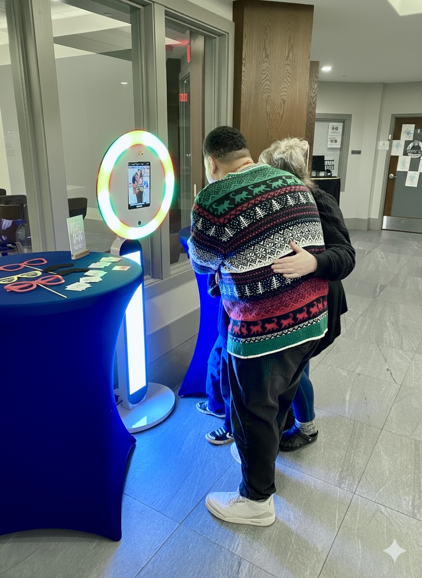 Our interactive photobooth and custom snow globe station create a unique experience guests love. We handle everything—setup, props, custom branding, and instant digital delivery—so you can focus on enjoying the moment.
