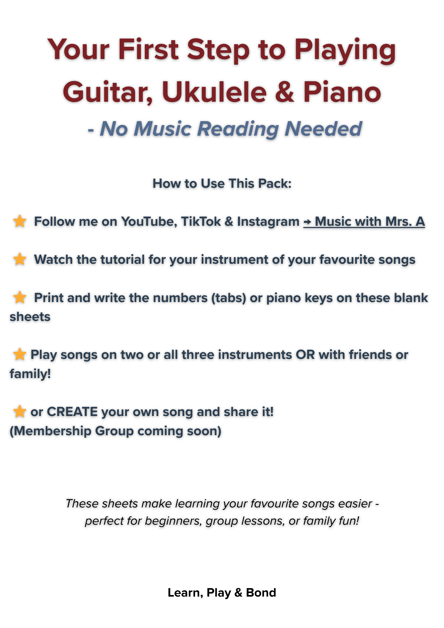 ⭐ Blank Tab Sheets for guitar, ukulele & piano keys