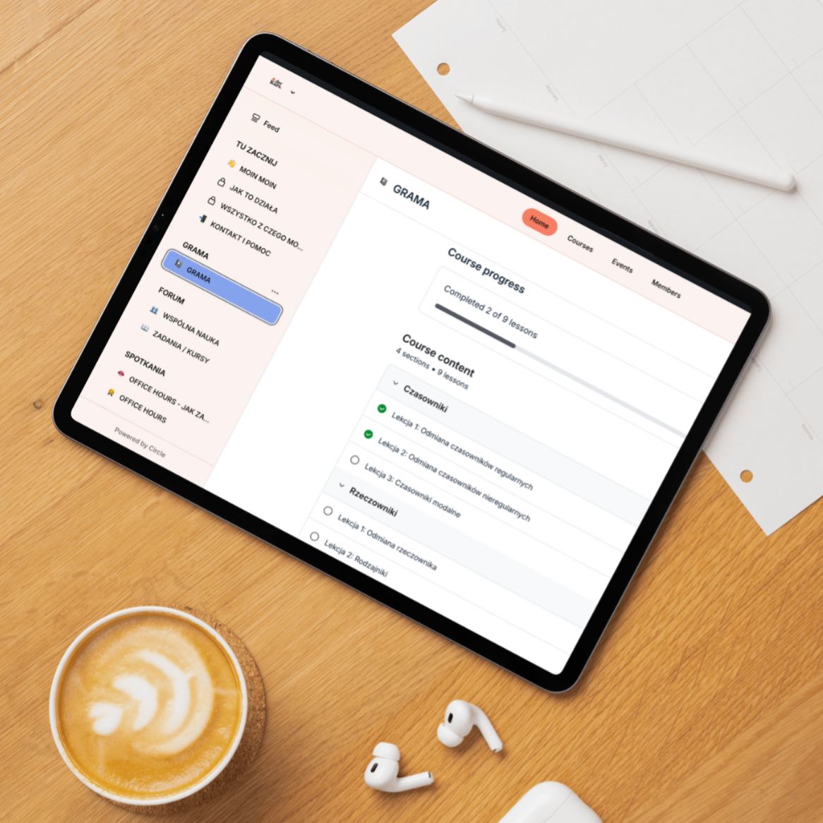 Zamiast wiecznego powtarzania gramatyki i uczenia się w próżni, dostajesz praktyczne scenki, feedback i społeczność, która wspiera Cię w realnych rozmowach – w pracy i codzienności.