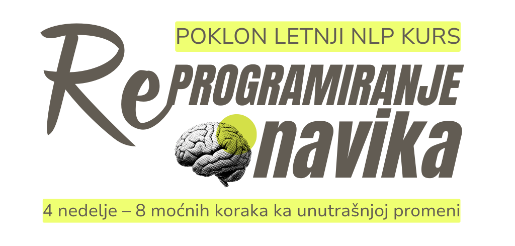 Ovaj POKLON mini kurs traje 4 nedelje i vodi te korak po korak kroz proces osvešćivanja, razumevanja i promene navika – koristeći dokazanu NLP metodologiju (Neuro-lingvističko programiranje).