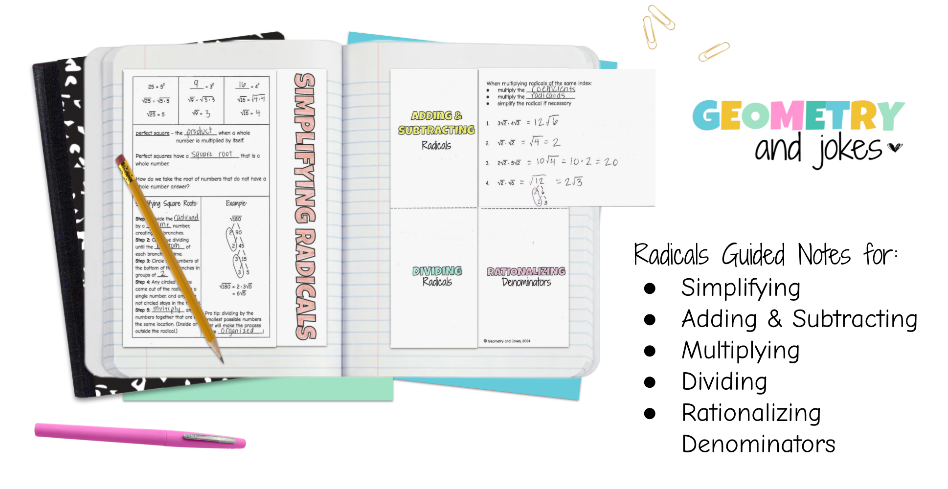 Get these Radicals Guided Notes for free instantly! You'll also be signing up to receive teaching tips, resources and other freebies for being part of my email list.
