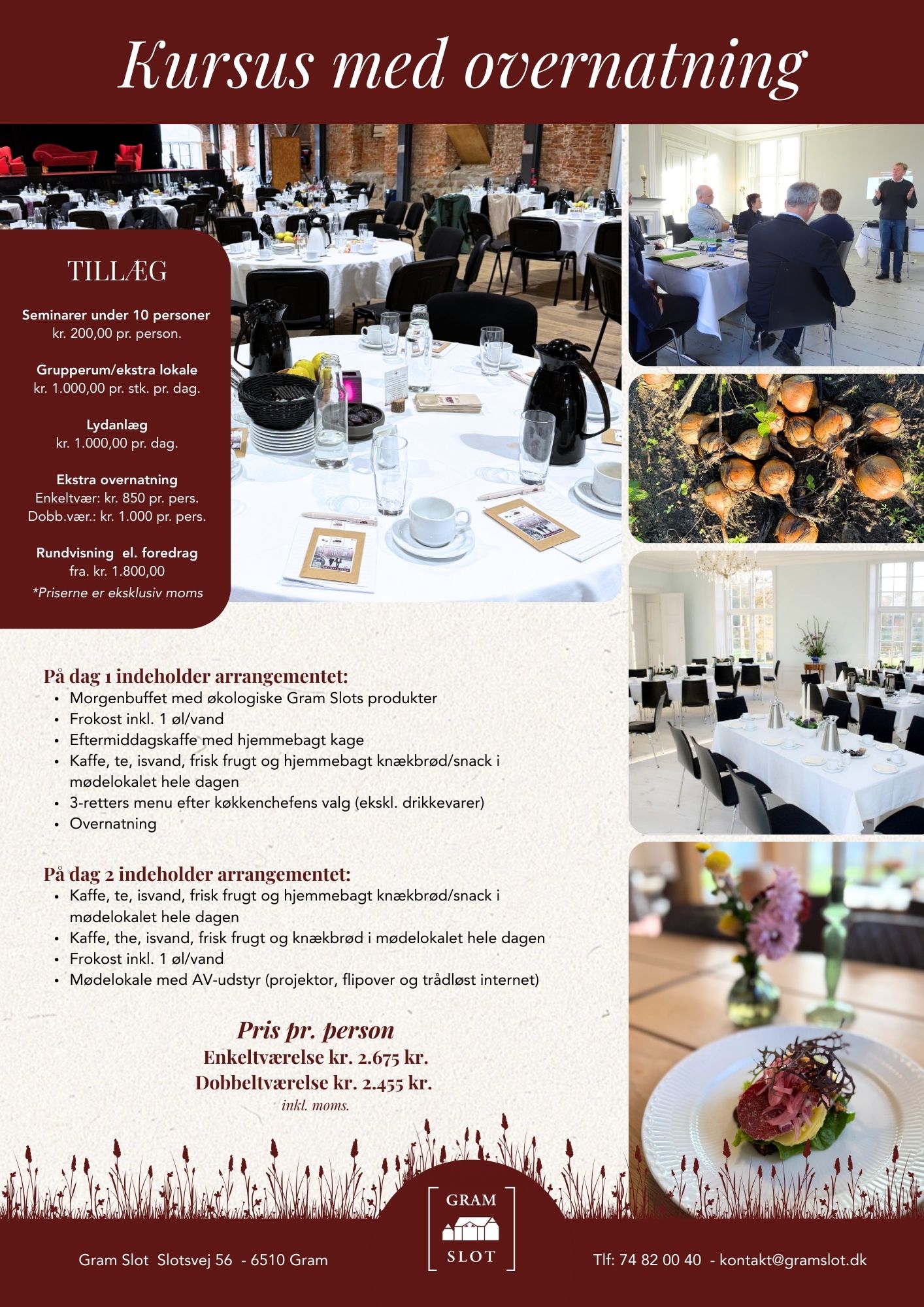 På Gram Slot får virksomheder mulighed for at skabe fokus, fællesskab og fordybelse, uden forstyrrelser og tæt på naturen. Vi tilbyder også skræddersyede løsninger til strategidage, workshops, interne seminarer, netværksarrangementer og firmafester.