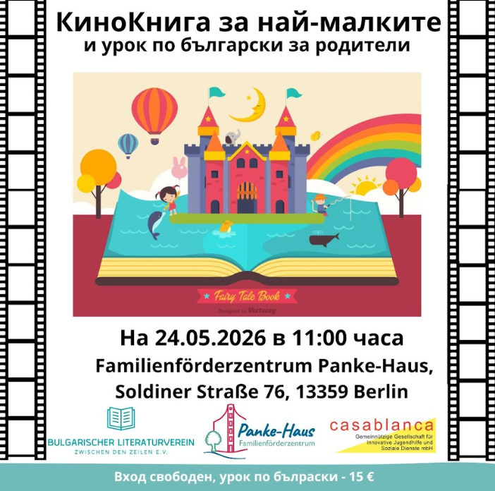 Докато малките гости се наслаждават на КиноКнигата, техните родители ще могат да участват в паралелен урок по българкси (такса 15 евро).