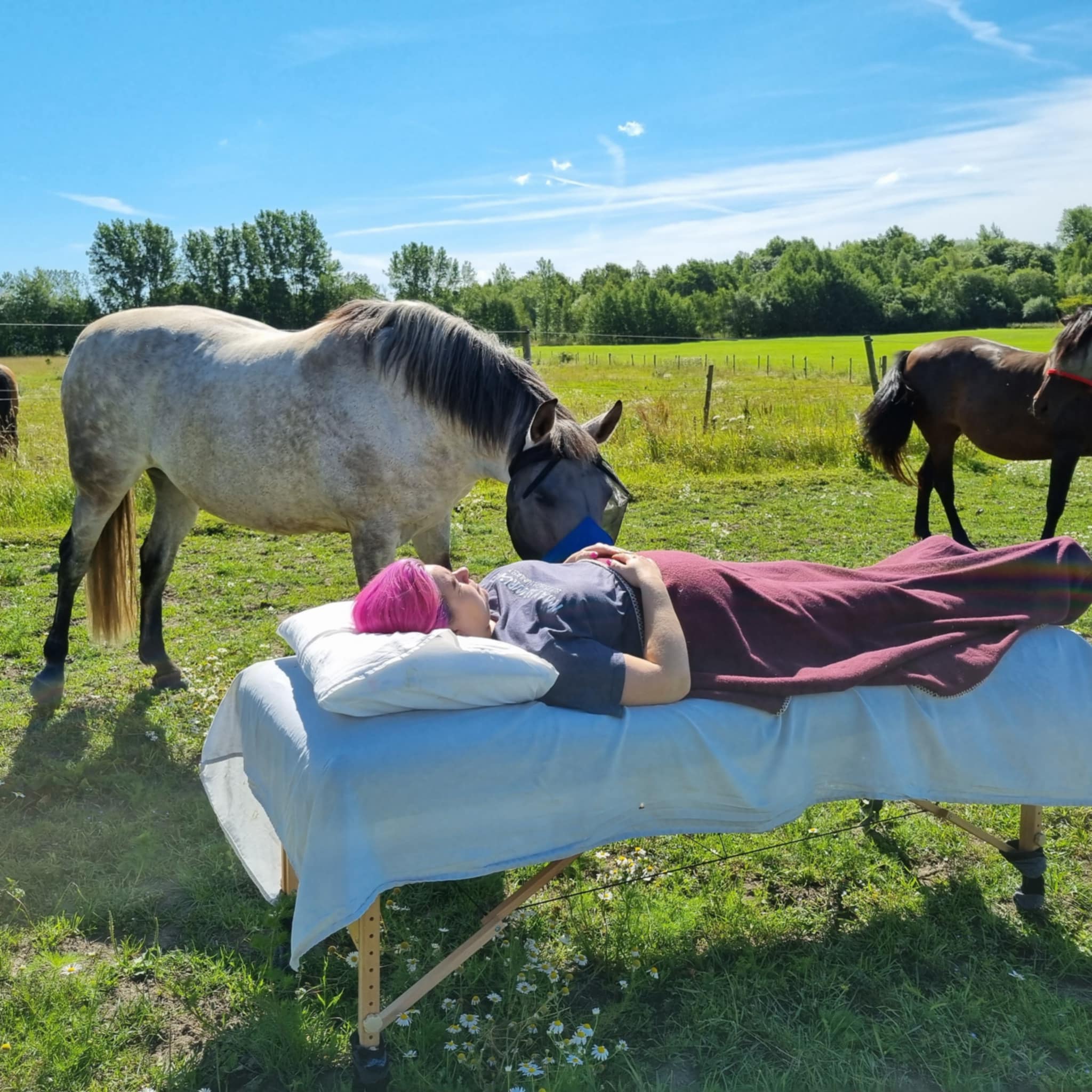Mina hästar är vana vid den här typen av arbete och har en unik förmåga att möta människor precis där de är.