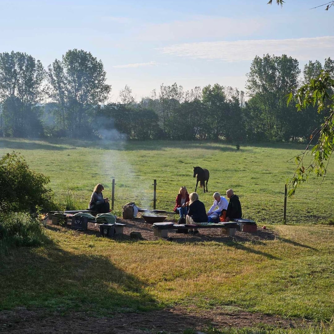 Det finns möjlighet att ta med husbil, husvagn eller tält och övernatta på gården för dig som vill stanna kvar i retreatens lugna energi.