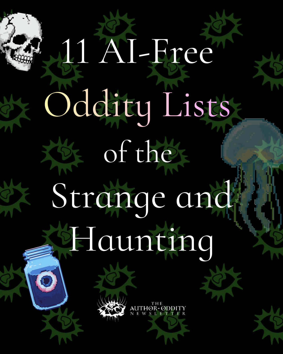 Subscribe to receive my author updates and monthly oddities lists.
