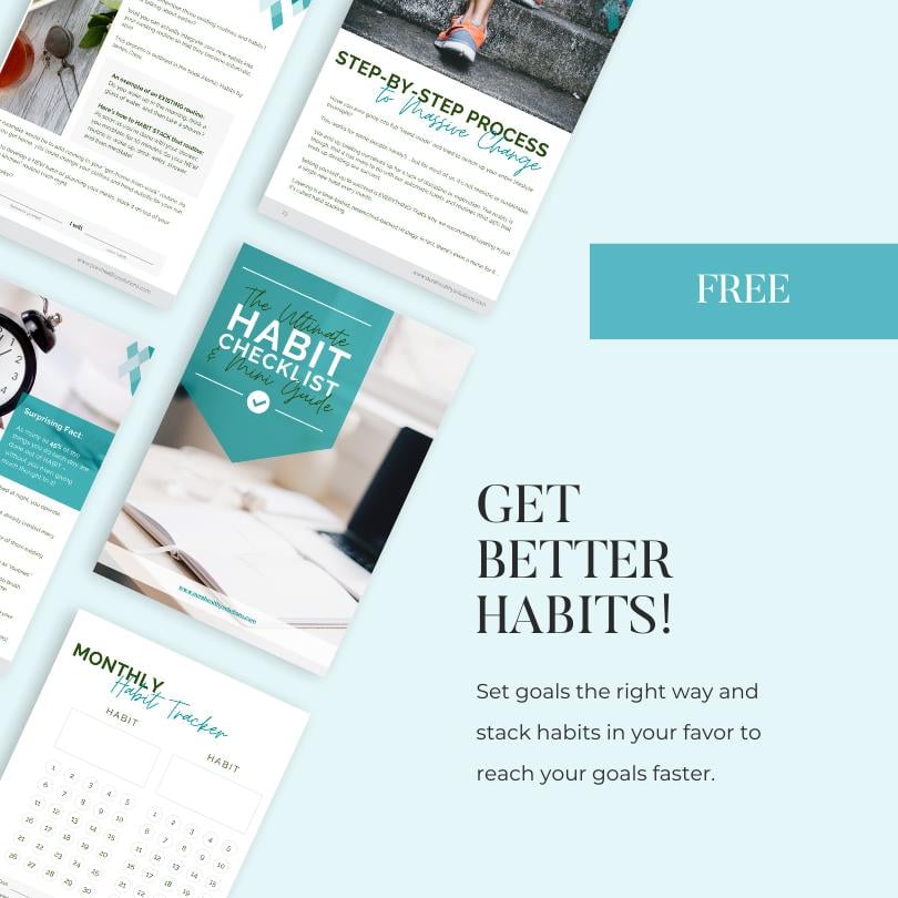 It’s designed as a workbook with Five Simple Steps to New Habits guiding you through the exact habit change process. (Includes printable Habit Trackers!)