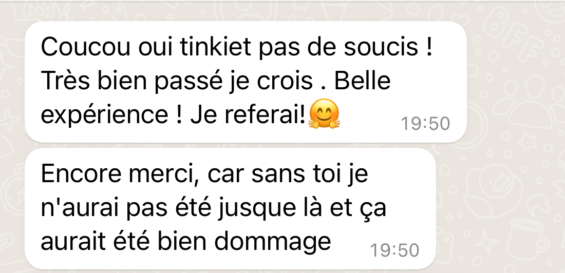 Un canal privé juste entre toi et moi, pour me poser toutes tes questions !