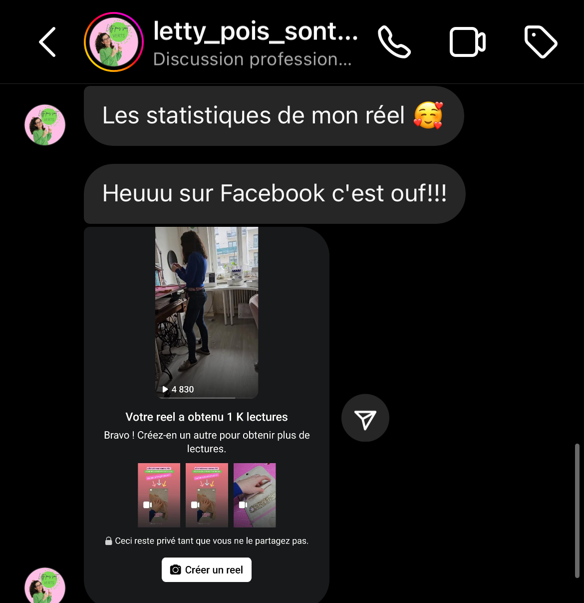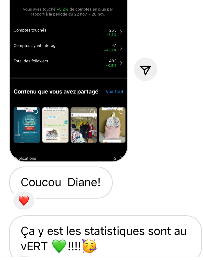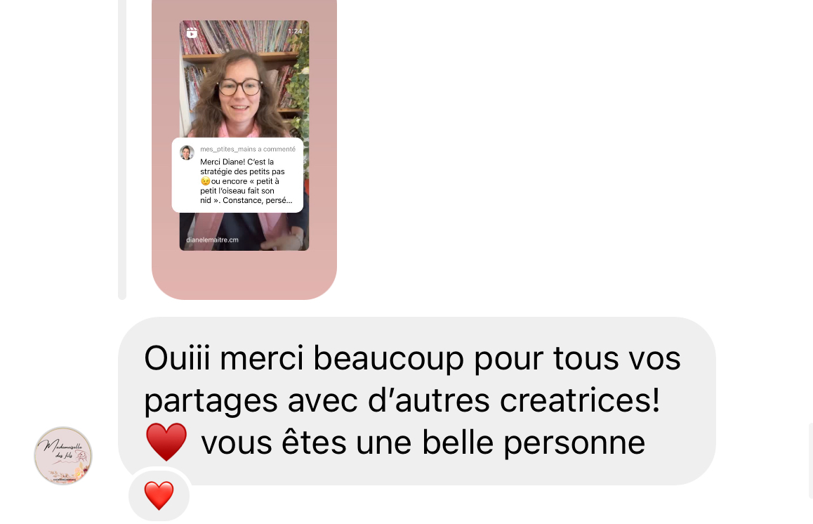 - Une autre avait peur de vendre → grâce aux stories et aux lives, elle a appris à parler de ses créations naturellement, et a fait ses premières ventes en direct.