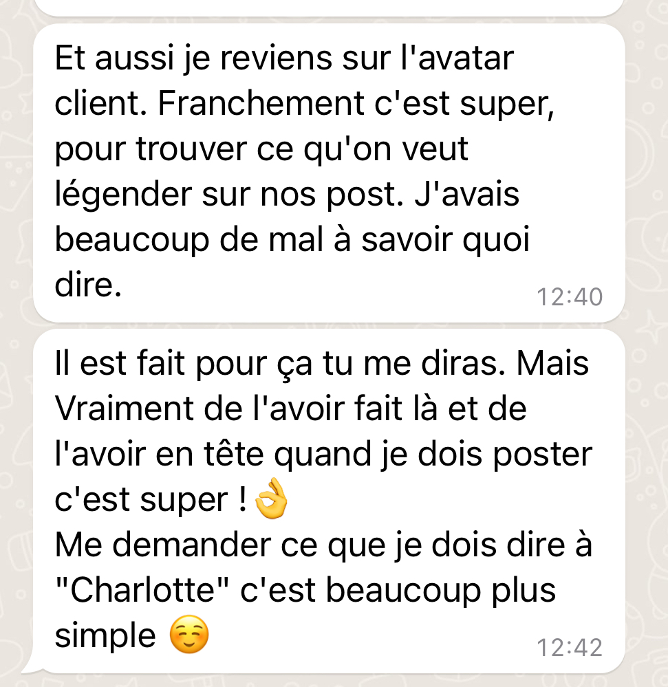 - Une de mes clientes postait sans stratégie → aujourd’hui elle a une ligne éditoriale claire et ses posts lui ramènent de nouvelles clientes chaque mois.