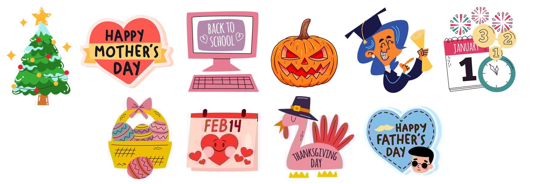 Easter in April. Mother's Day in May. Father's Day in June. Graduation season. Back-to-School in August. Halloween in October. Thanksgiving. Christmas. Valentine's Day. New Year's...and so on!