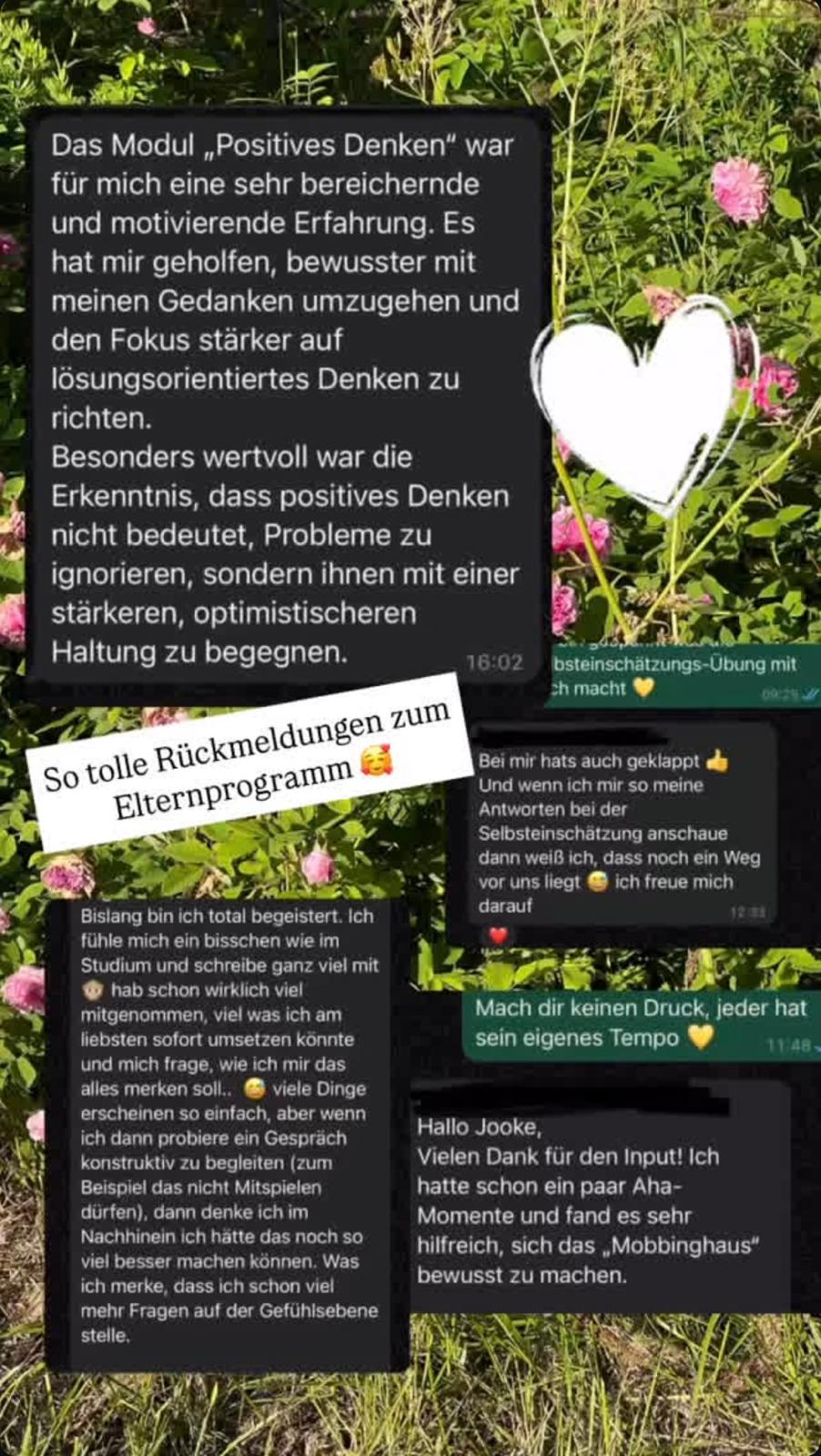 Niemals hätten wir mit Mobbing schon in der 1. Klasse gerechnet. Es gab so manches Aha-Erlebnis in den Coachings und die Freude des Kindes, wenn es das Gelernte in der Schule erfolgreich umsetzen konnte, ist unbezahlbar!