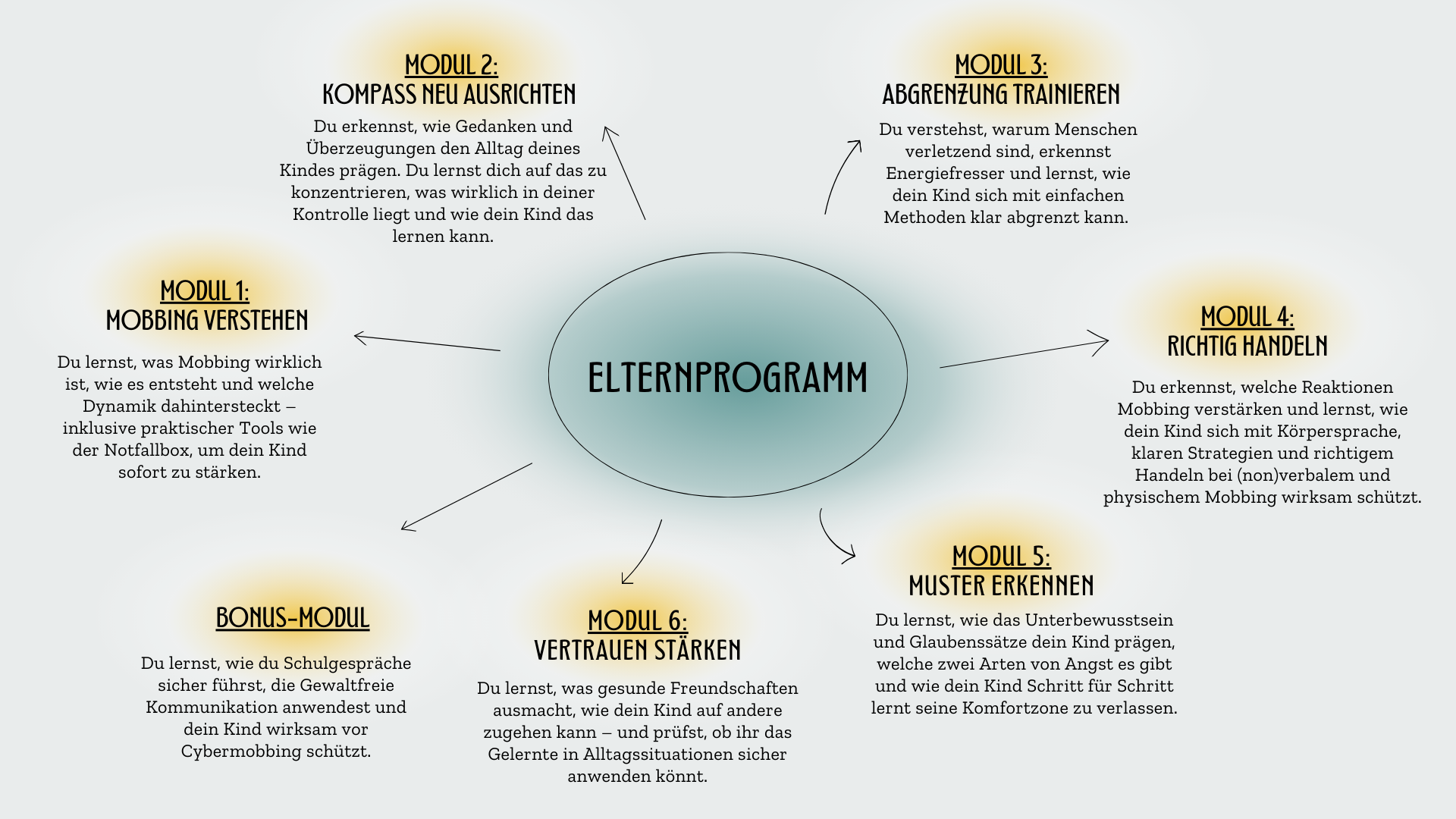 Ein begleitetes Online-Elternprogramm, das dich raus aus der Hilflosigkeit hin zur Handlungssicherheit führt. Es ist dein 7-Schritte-Fahrplan, um deinem Kind eine mobbingfreie Schulzeit zu ermöglichen - ganz egal, ob Mobbing bei euch schon Thema ist oder nicht.