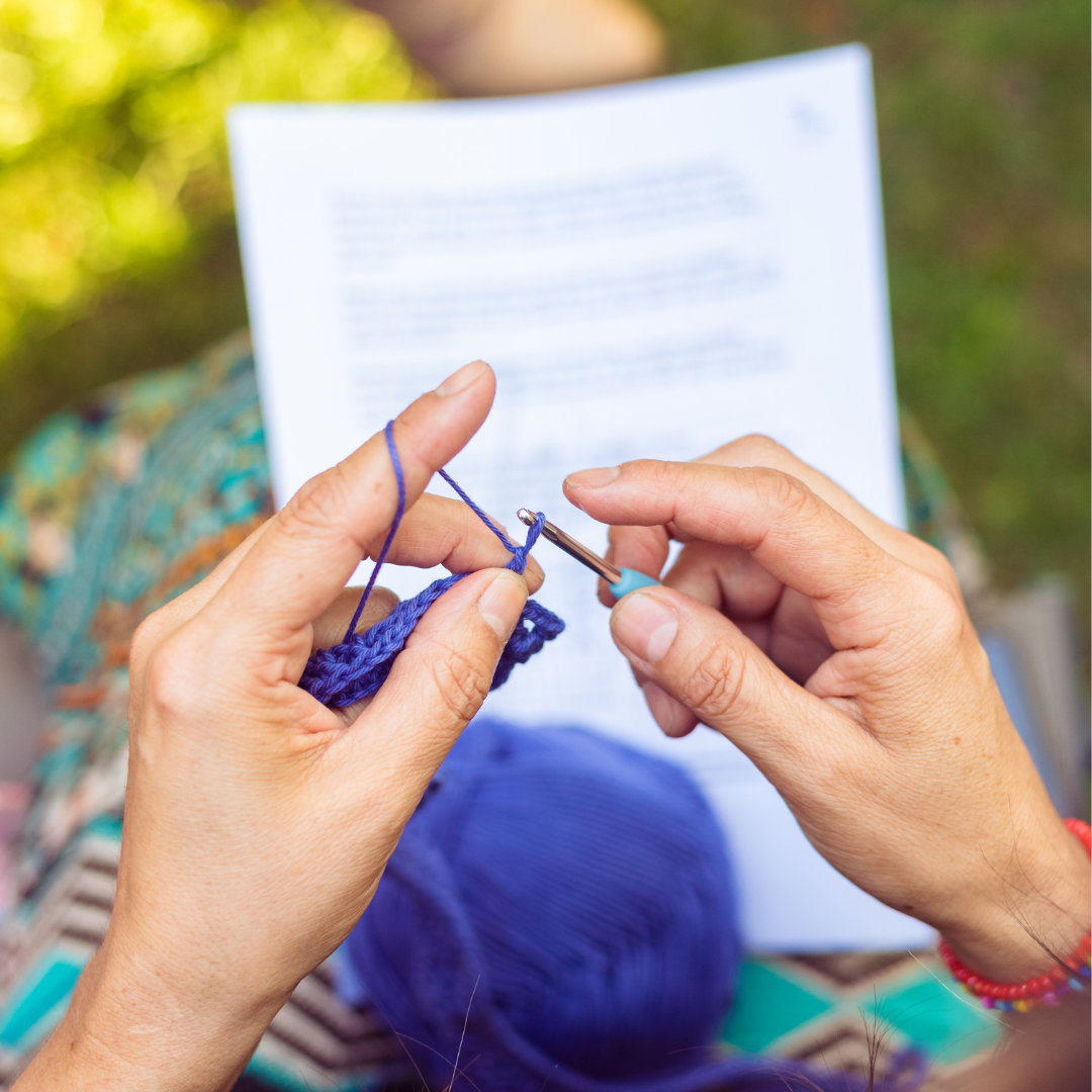 Sumérgete en un mundo de relajo mientras tejes tu cintillo cruzado.