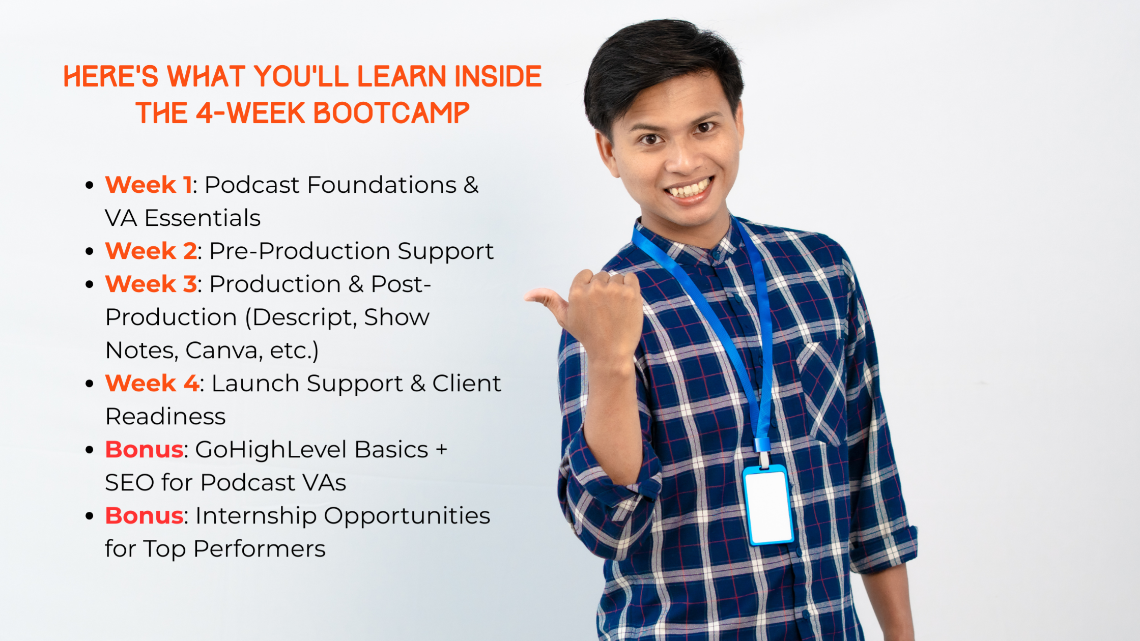 Not at all! This Bootcamp is designed for both beginners and existing VAs looking to specialize in podcast support. We’ll guide you step-by-step — no tech background or client experience required.